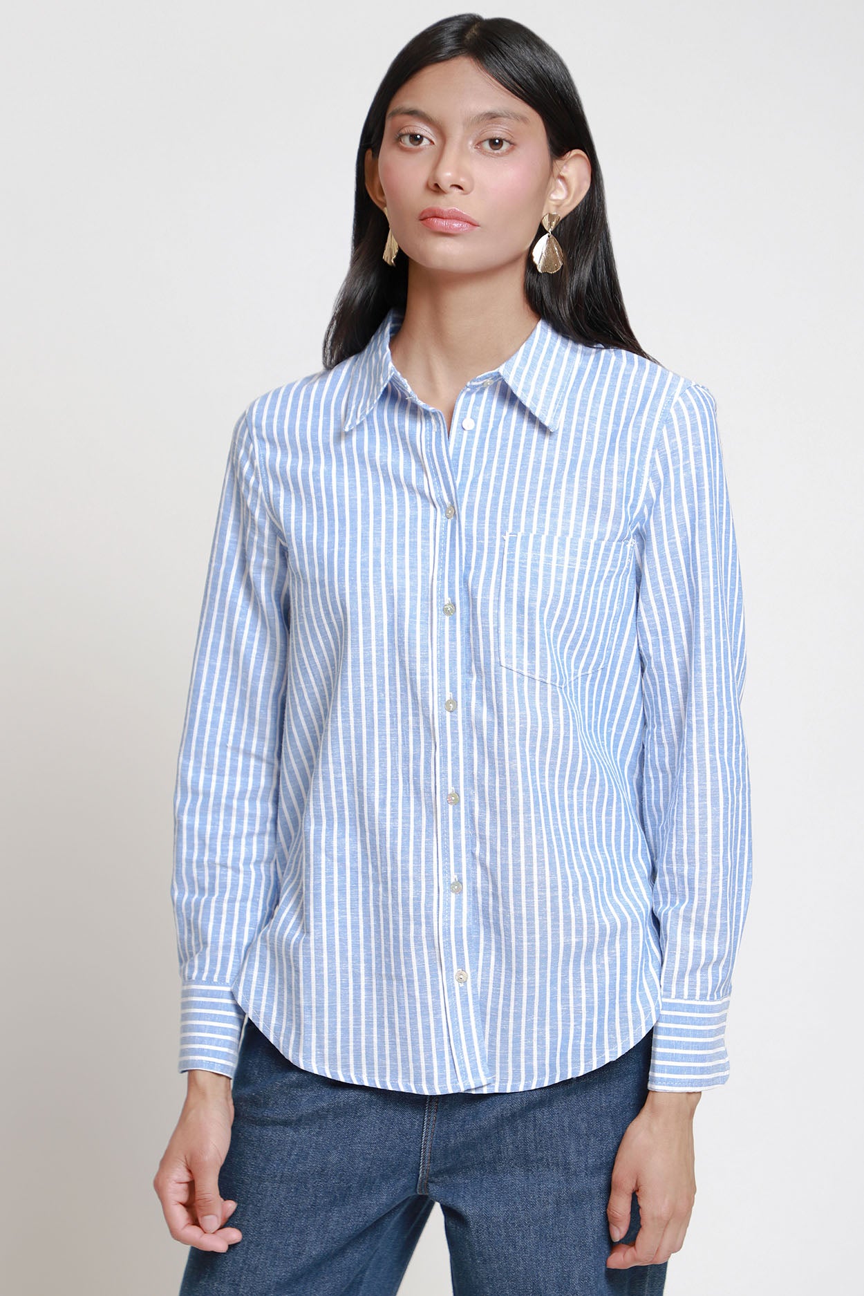 Blusa Camisera Manga Larga - L / Blusa Manga Larga