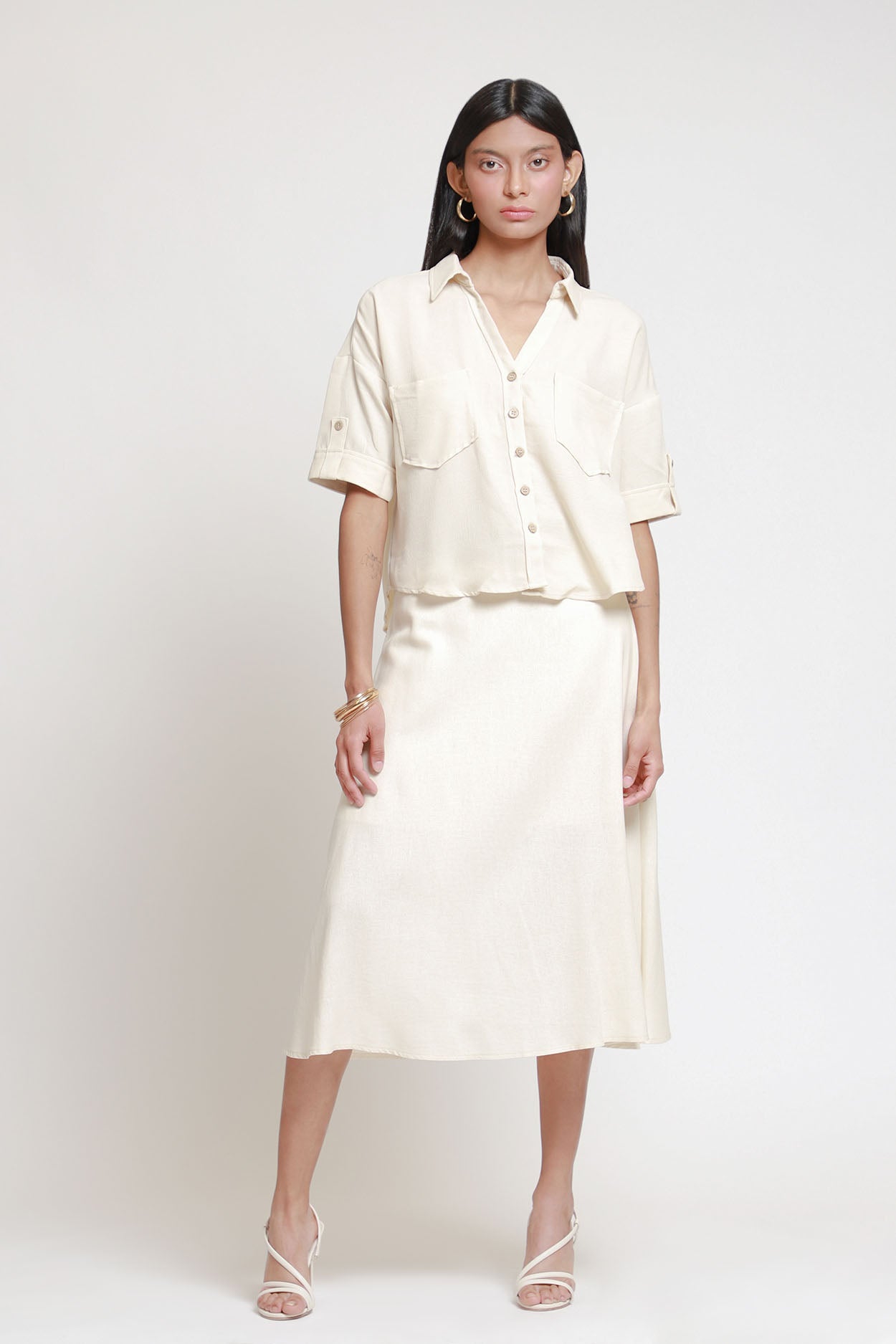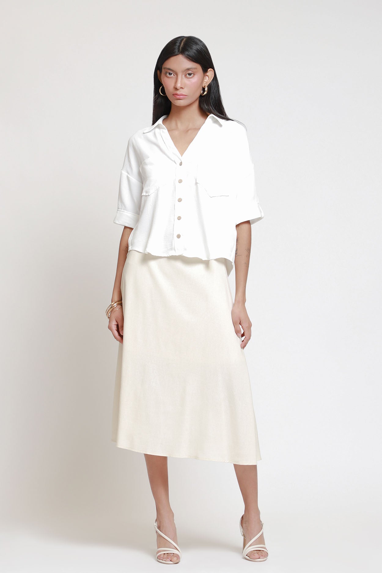 Falda Midi Satinada - M (30) / Falda Midi